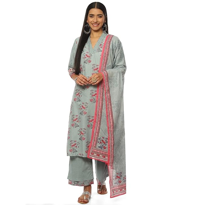 2. BIBA Printed Cotton Round Neck Womens Salwar Kurta Dupatta Sets